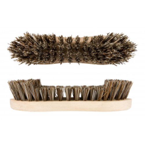 With natural tampico and bassine fibres Wooden handle Sticky label FSC certified Weighs 131 grams