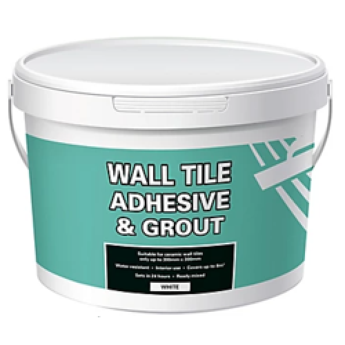 Water-resistant, easy to use ready mix wall tile adhesive & grout 2 in 1 ready mix product, less waste and mess as no mixing required Covers up to 8m2 Suitable for ceramic wall tiles up to 300mm x 300m Sets in 24 hours (@ 20'c)