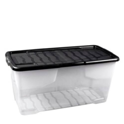 Introducing our Plastic 80 Litre Box with Black Lid, a spacious and practical storage solution designed to keep your belongings organized and securely stored. This generously sized box offers ample storage capacity while remaining conveniently sized for various storage needs. Crafted from high-quality plastic, this storage box is lightweight yet durable, making it perfect for storing a wide range of items such as clothing, accessories, toys, crafts, and household supplies. The sleek black lid provides a stylish contrast to the clear base, adding a touch of sophistication to your storage space while ensuring that your belongings remain securely contained and protected. Dimensions: Length: 57 cm – Width: 40 cm – Height: 40 cm