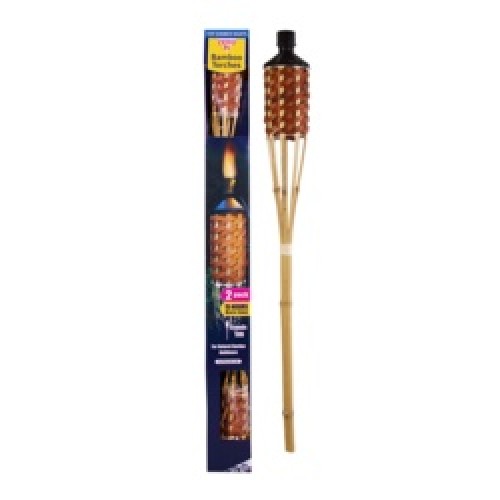 Twin pack bamboo torches for natural ambience and al-fresco evenings Safety tested and durable, with 15 hour burn time Manufactured using 100% biodegradable materials Stands 1 metre high