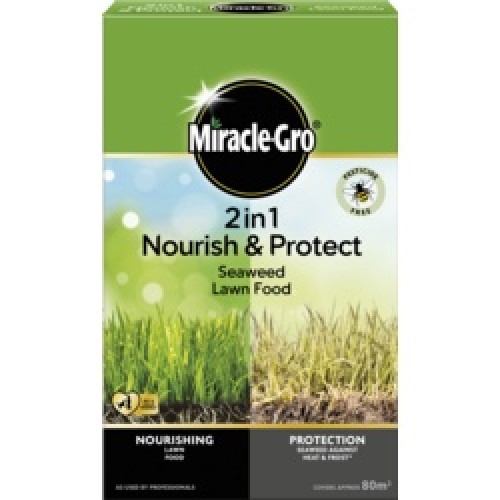New Miracle-Gro® 2 in 1 Nourish & Protect Seaweed Lawn Food feeds the lawn with all the nutrients it needs, and simultaneously the seaweed builds up the immune system of the lawn to withstand heat and frost.